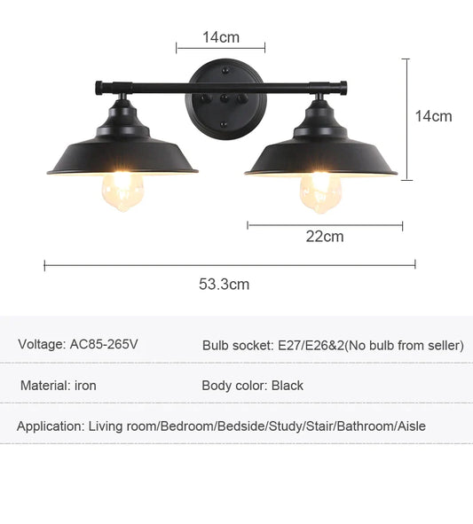 Vintage industrial Φωτιστικό τοίχου Loft Σίδερο διπλής κεφαλής