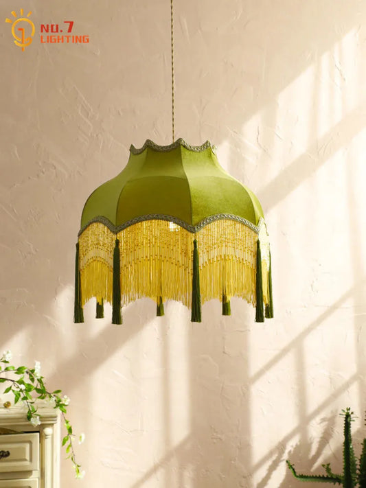 vintage γαλλικός πολυέλαιος led βελούδινες χρυσές φούντες