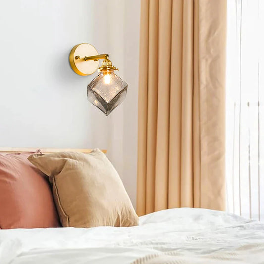 Χρυσό φωτιστικό τοίχου με κυλινδρική γυάλινη απόχρωση