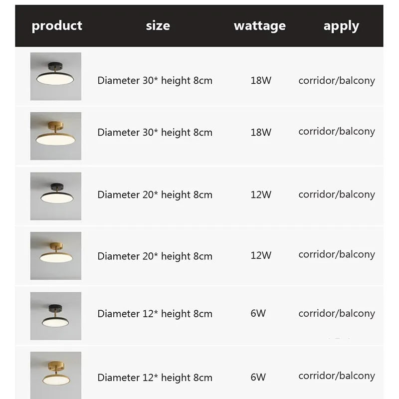 μινιμαλιστικό φως οροφής led χρυσό μαύρο χάλκινο υπνοδωμάτιο σαλόνι χωλ διάδρομος