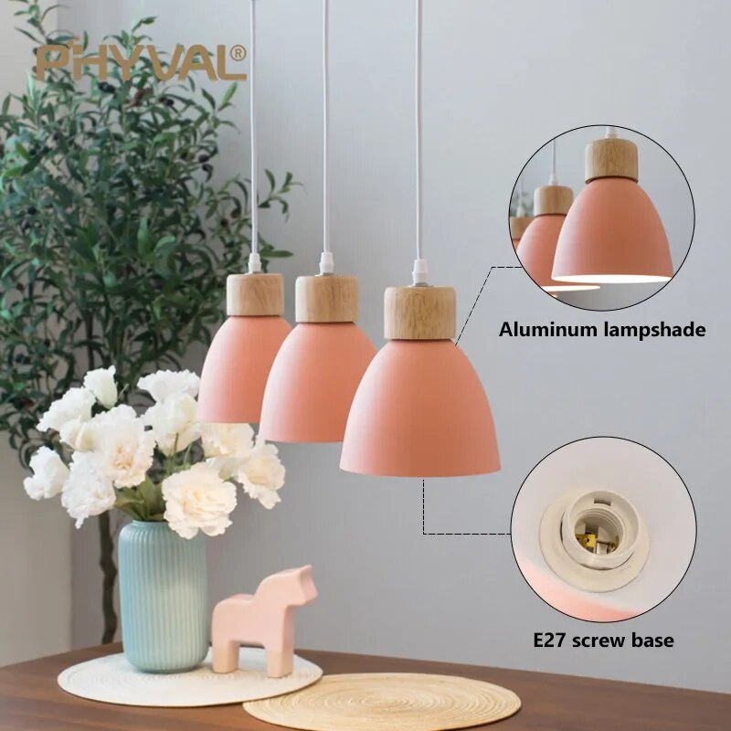 Nordic Macaron Chandeliers E27 Creative ξύλινα φωτιστικά κομοδίνου για μελέτη υπνοδωματίου Cafe Bar Restaurant Decor 3 Heads Hanging Lamps