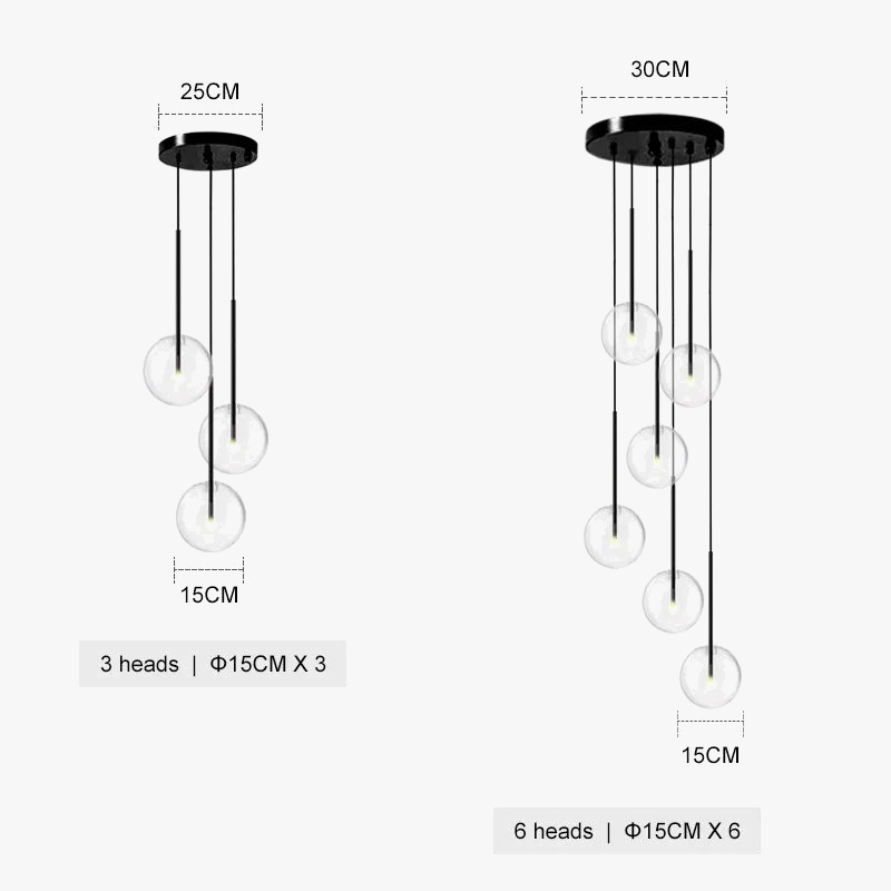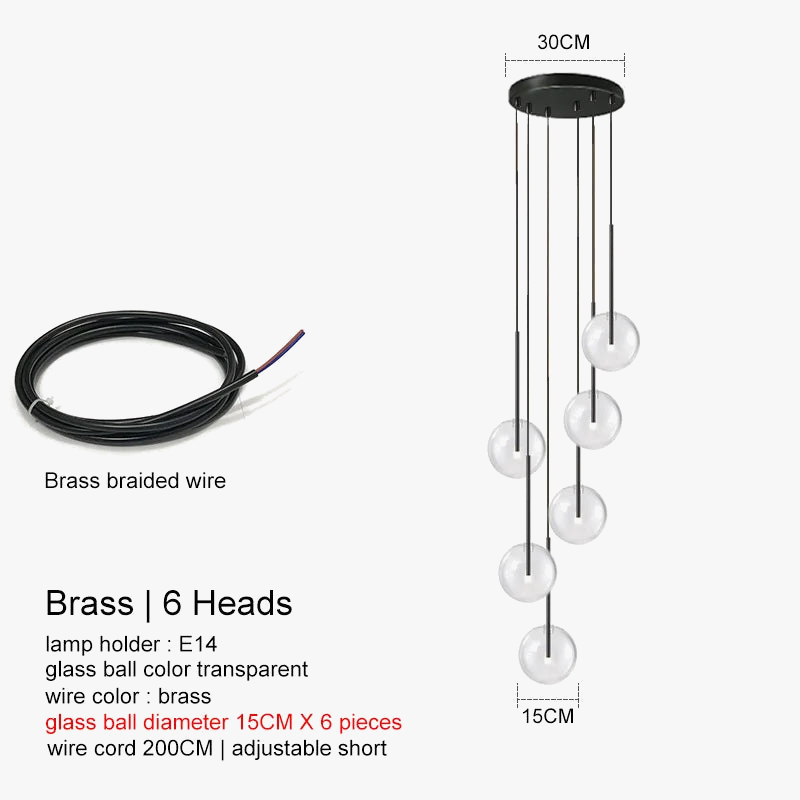 Luxury Led Big Chandelier Φωτιστικά κρεμαστά κρεμαστά για τις σκάλες του λόμπι Διακόσμηση εστιατορίου Τραπεζαρία Μαύρο κρεμαστό φωτιστικό γυάλινη μπάλα
