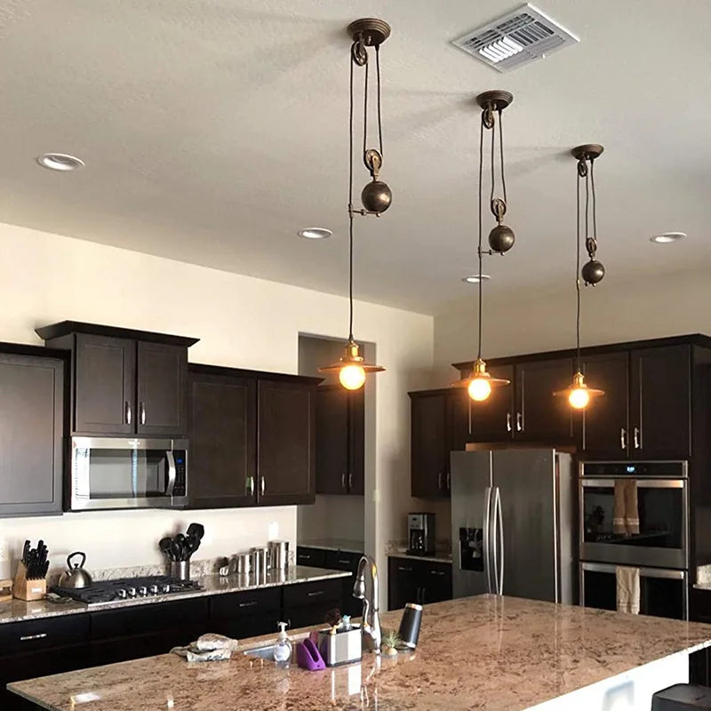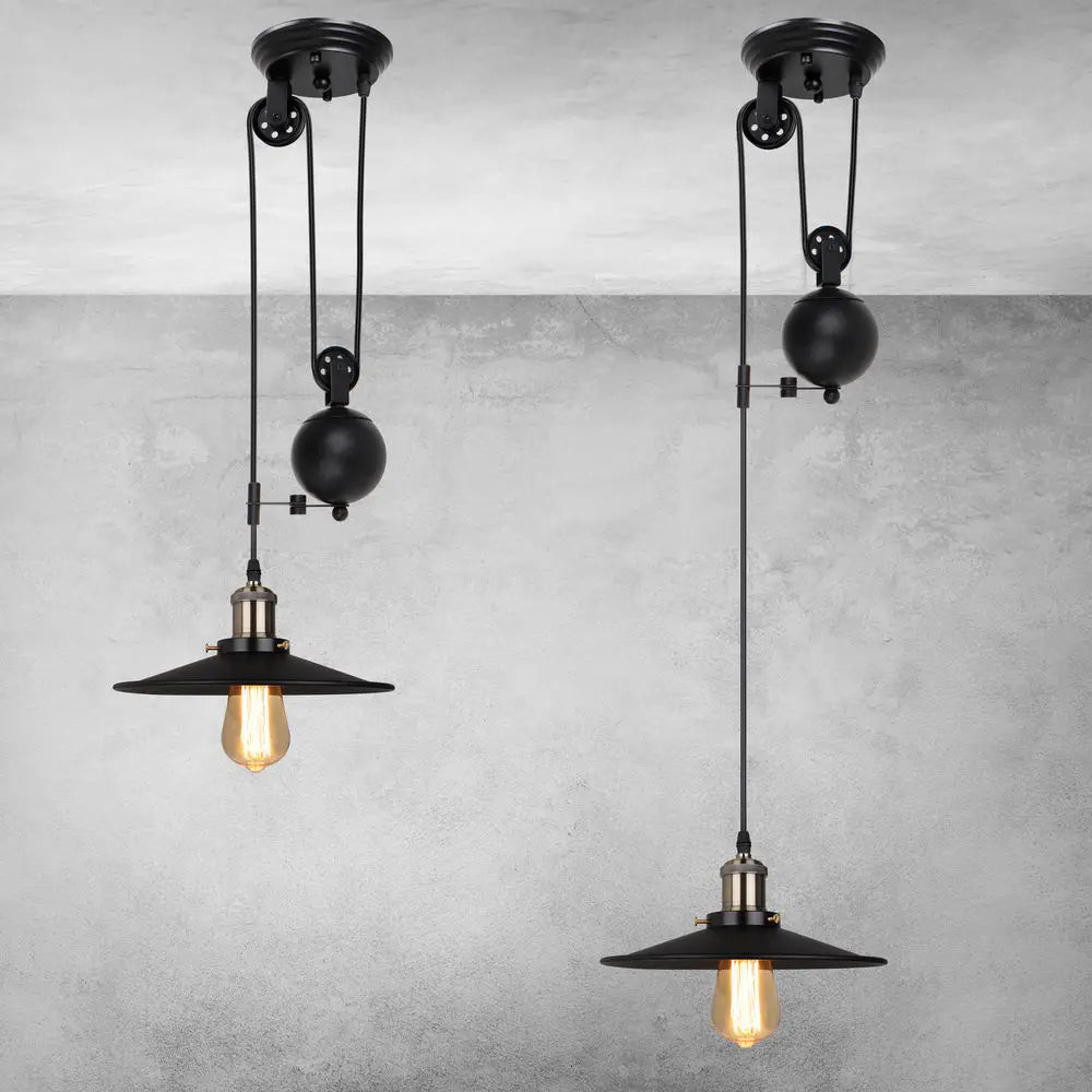 Ρυθμιζόμενο Retro Vintage Loft Αντίκες Σιδερένιο Φωτιστικό Κρεμαστό με Τροχαλία