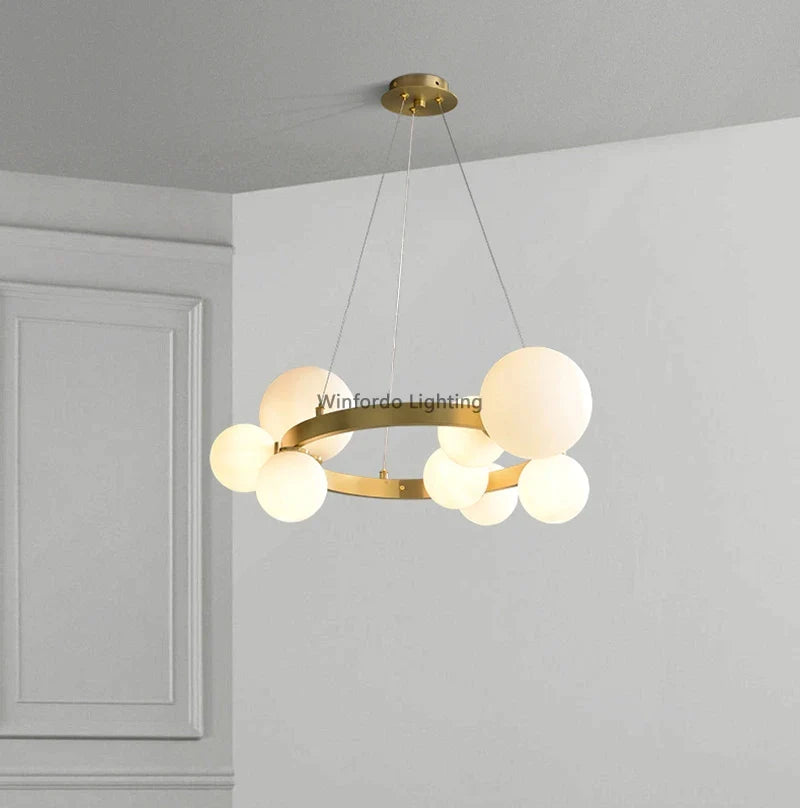 Στρογγυλός χρυσός πολυέλαιος LED με γυάλινες μπάλες