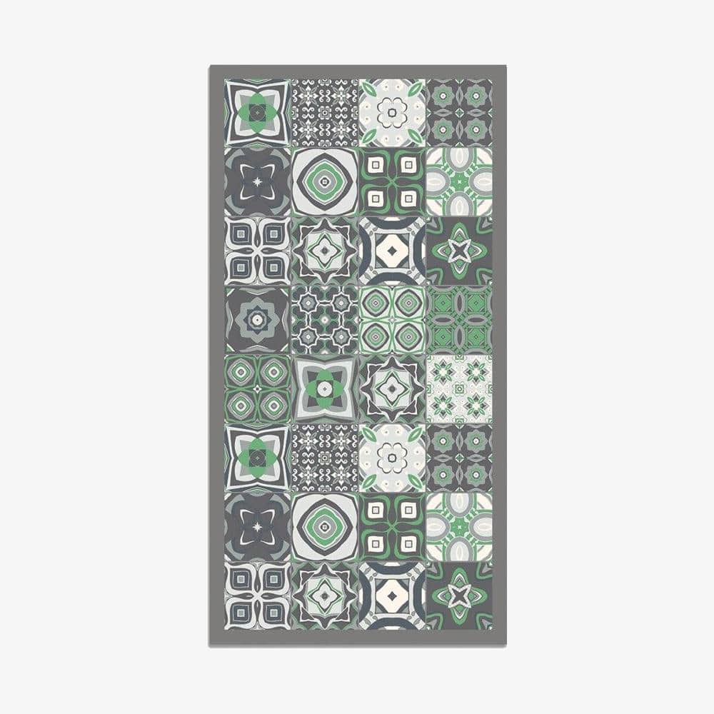 Vintage ορθογώνιο χαλί με πράσινα και γκρι σχέδια Χαλί